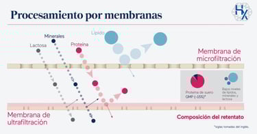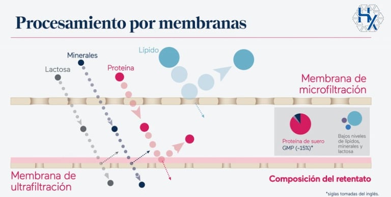 Luego se aplica ultrafiltración, que retiene proteínas complejas mientras deja pasar carbohidratos y minerales.